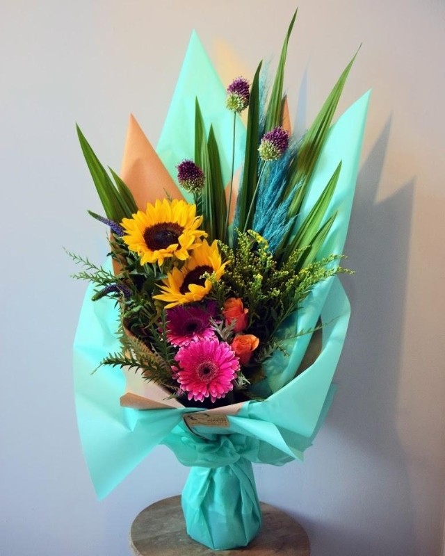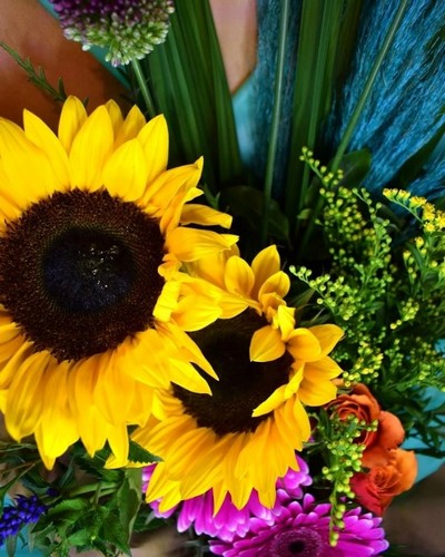 Featuring Sunflower and complimenting flowers for a fantastic design that is sure to impress.